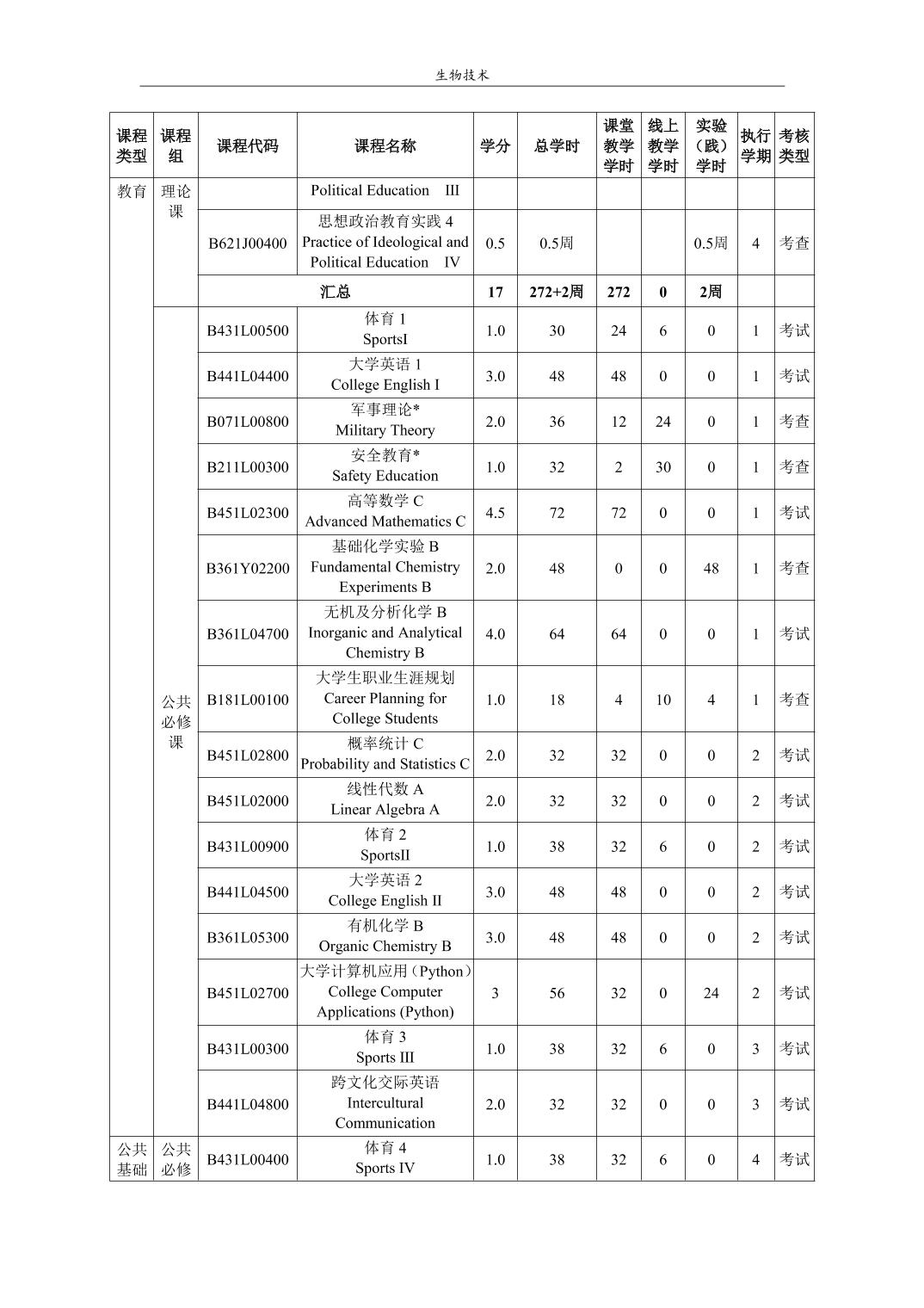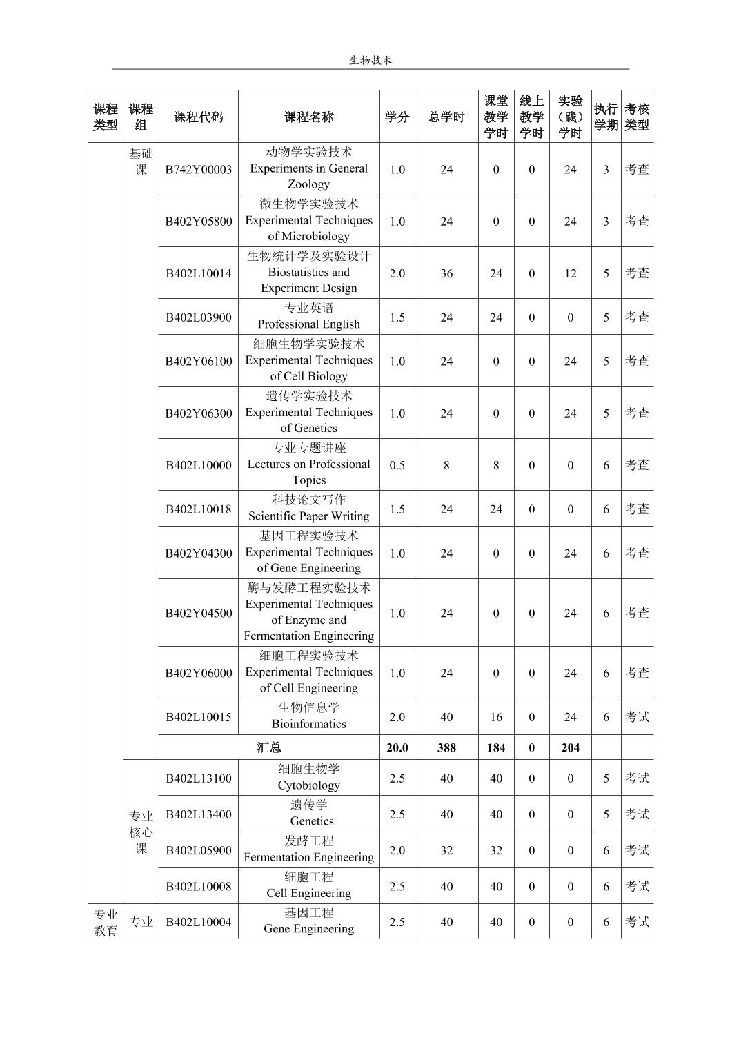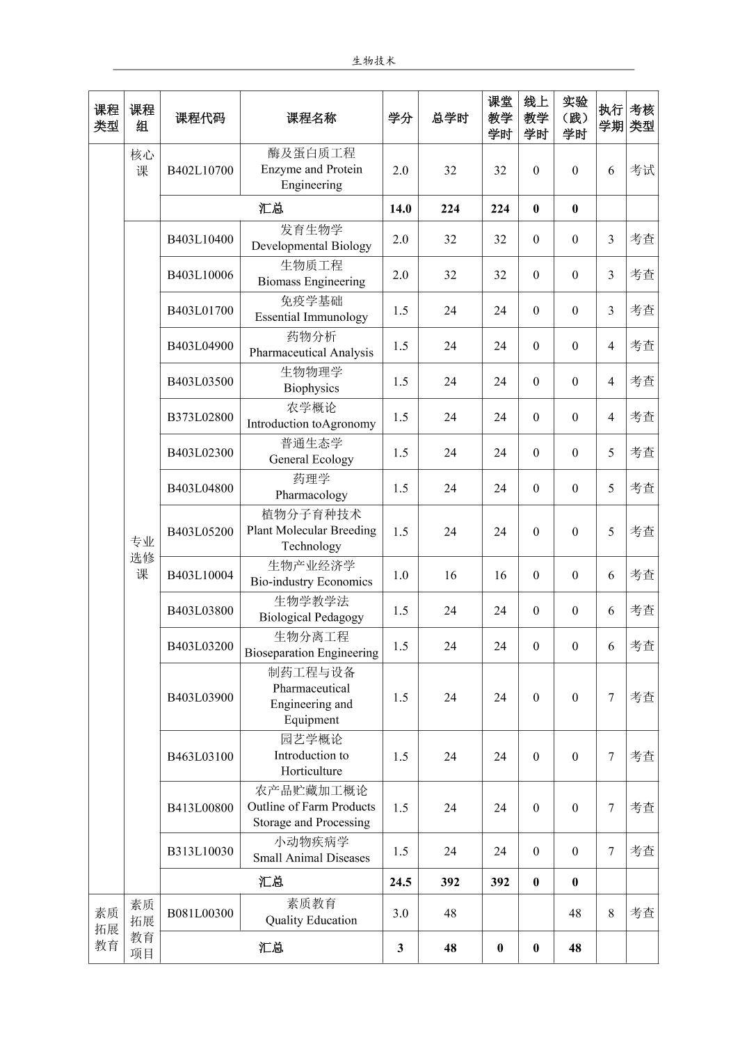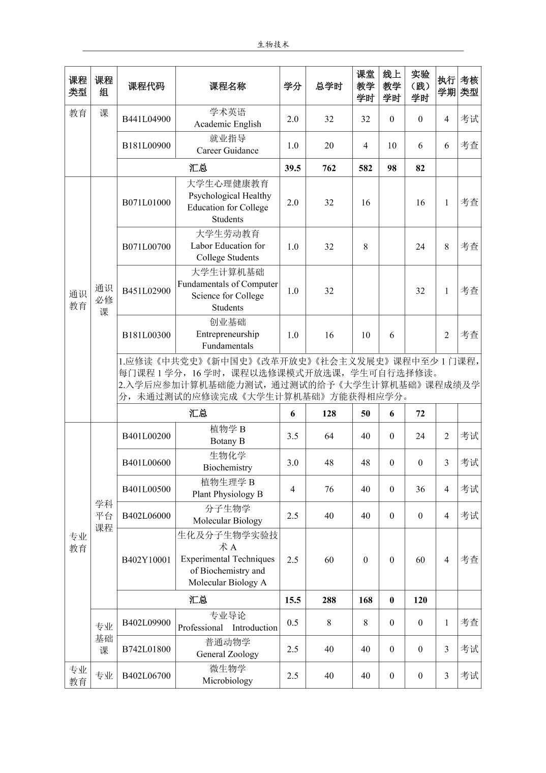 生物技术培养方案(2022版)