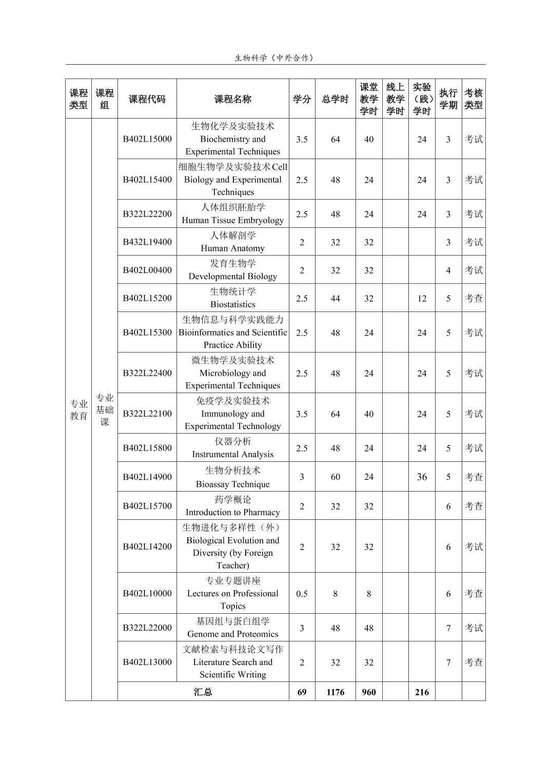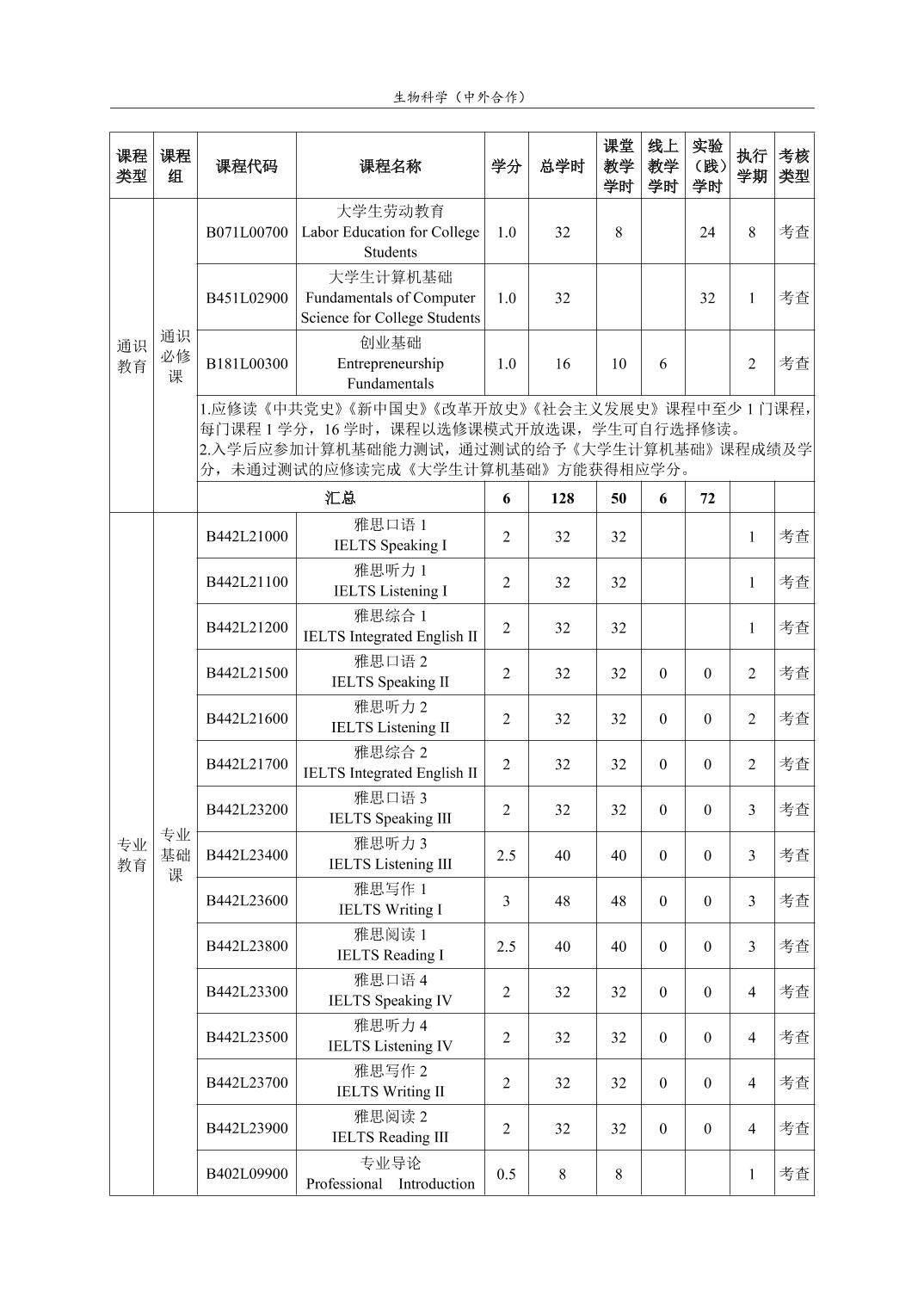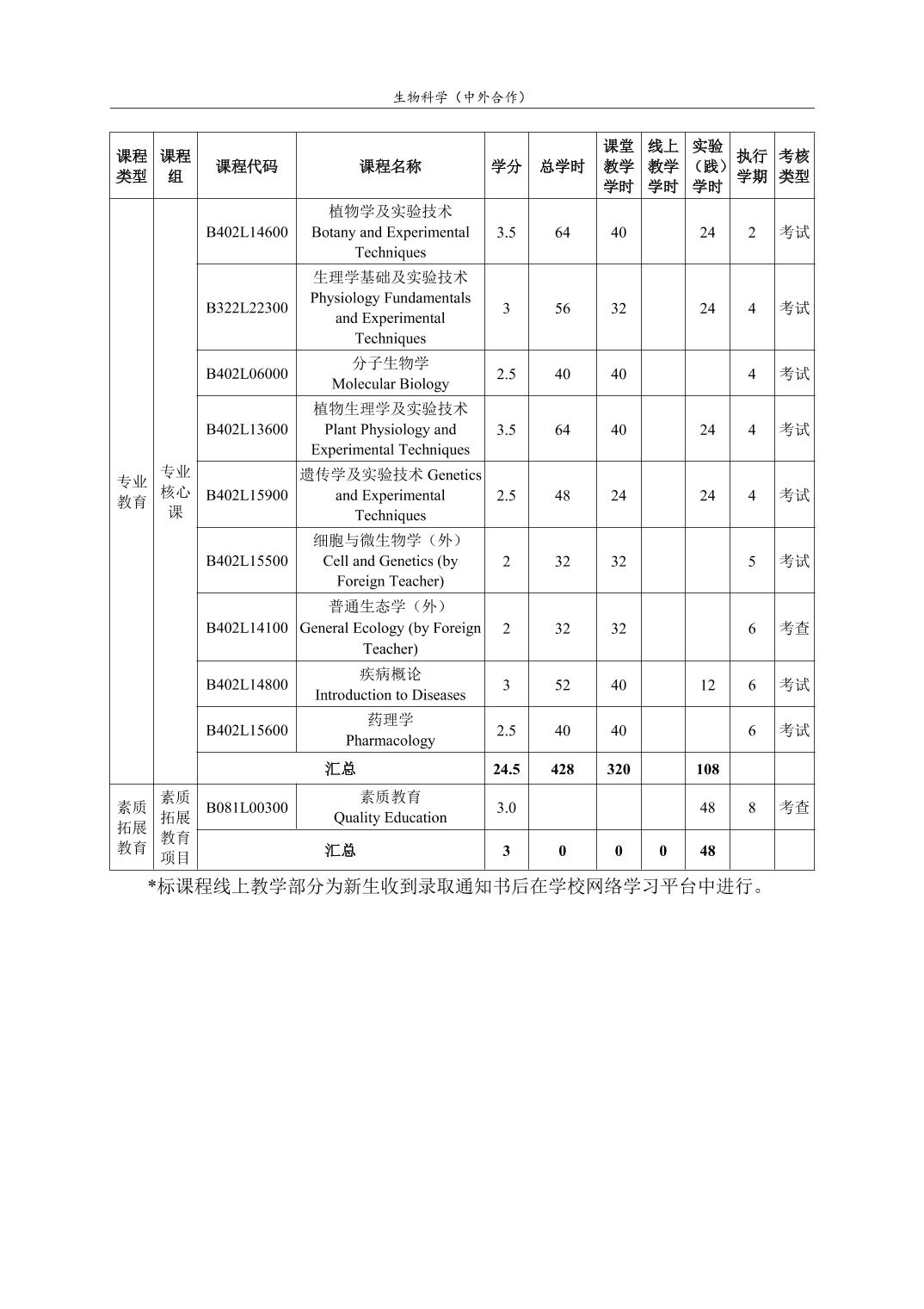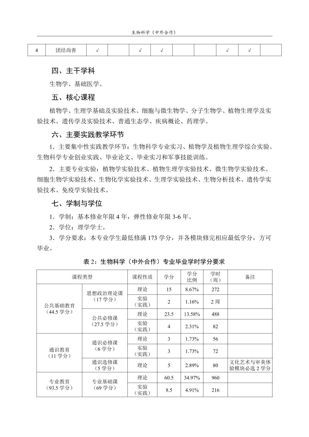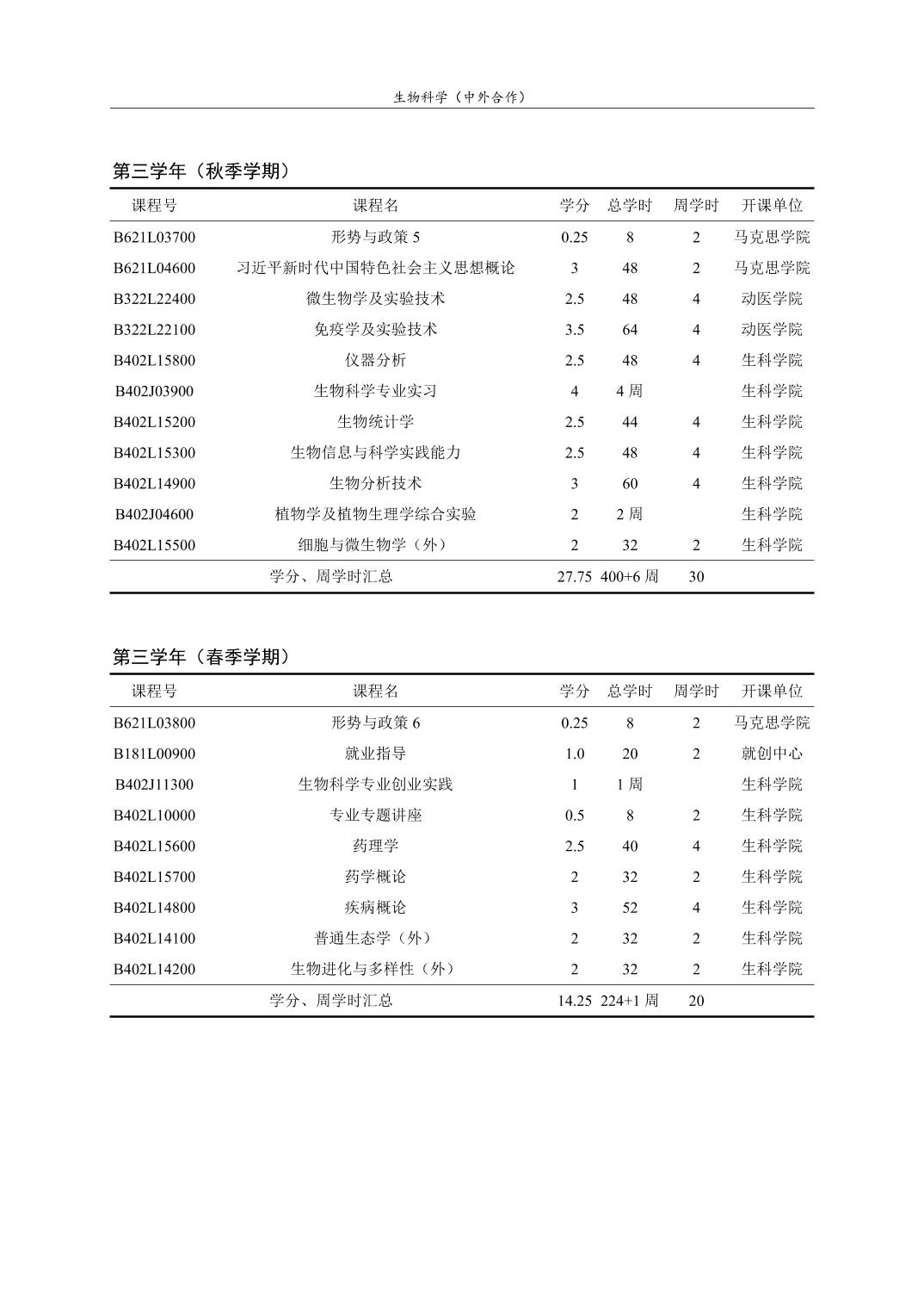 生物科学(中外合作)人才培养方案(2022版)
