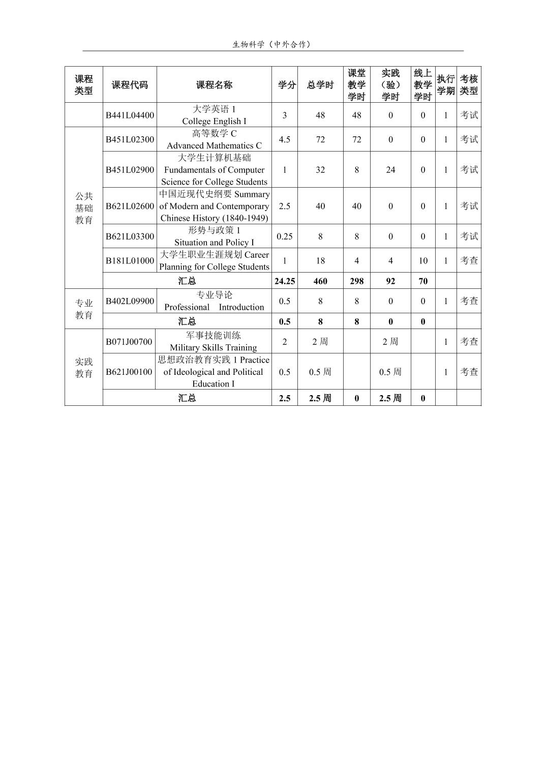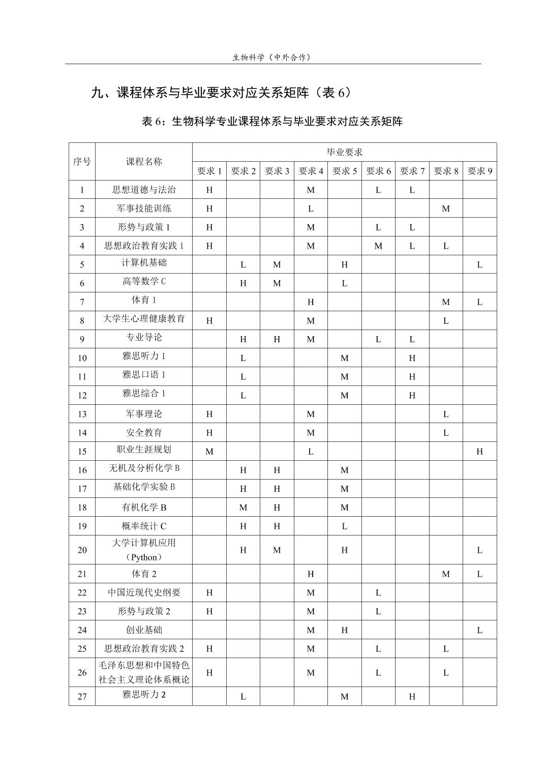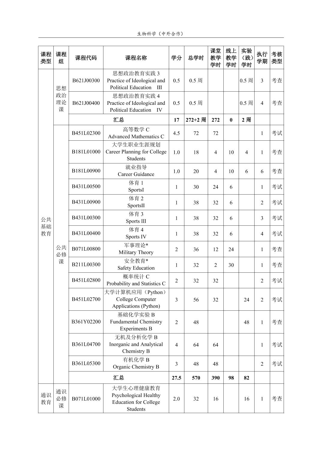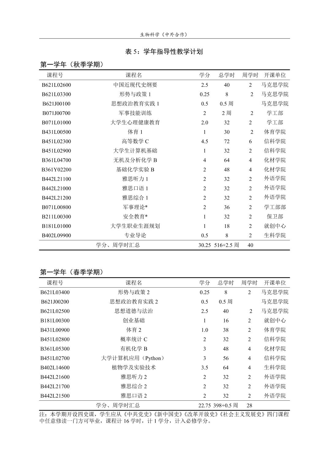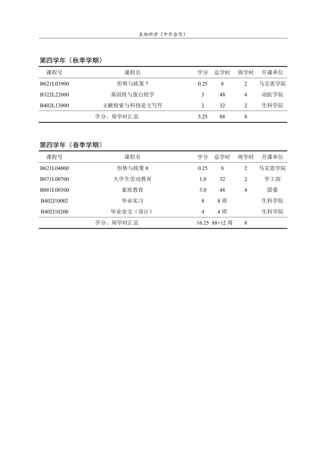 生物科学(中外合作)人才培养方案(2022版)