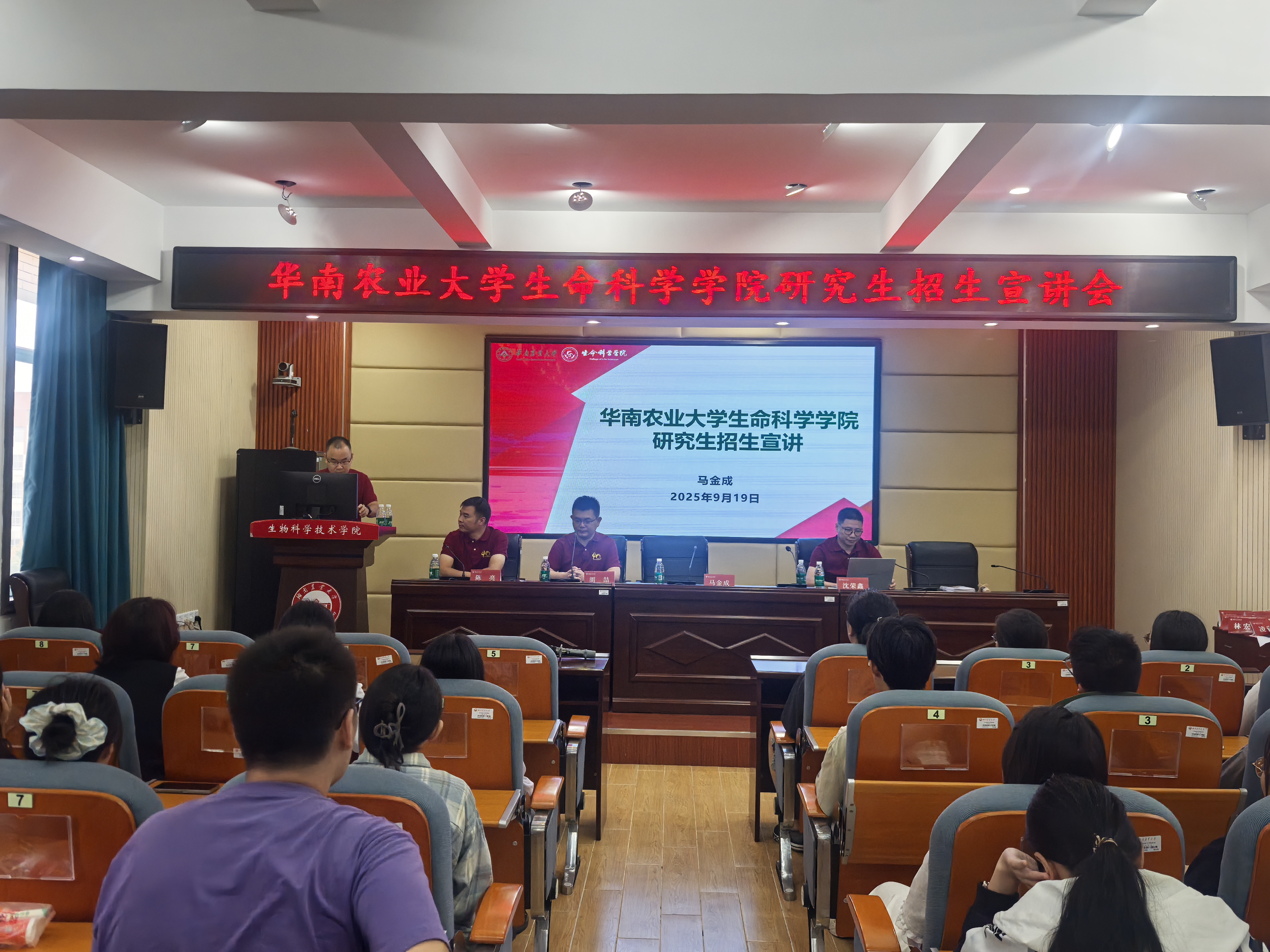 2025年9月19日上午,华南农业大学生命科学学院研究生招生宣讲会在湖南农业大学生物科学技术学院十一教南503教室成功举办。本场宣讲会旨在向生物科学技术领域相关专业的学子全面介绍华南农业大学生命科学学院的学科特色、科研实力及研究生招生政策,吸引优秀生源。