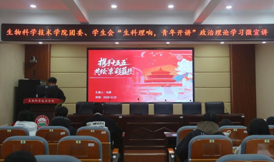 为紧跟时代发展步伐,点燃青年学生的理想火炬,引导广大青年在新时代浪潮中锚定奋斗方向、勇担强国使命,以“青春之我、奋斗之我”为中华民族伟大复兴注入不竭动力,2025年12月23日,生物科学技术学院团委、学生会举办第六期“生科理响,青年开讲”政治理论学习微宣讲活动。