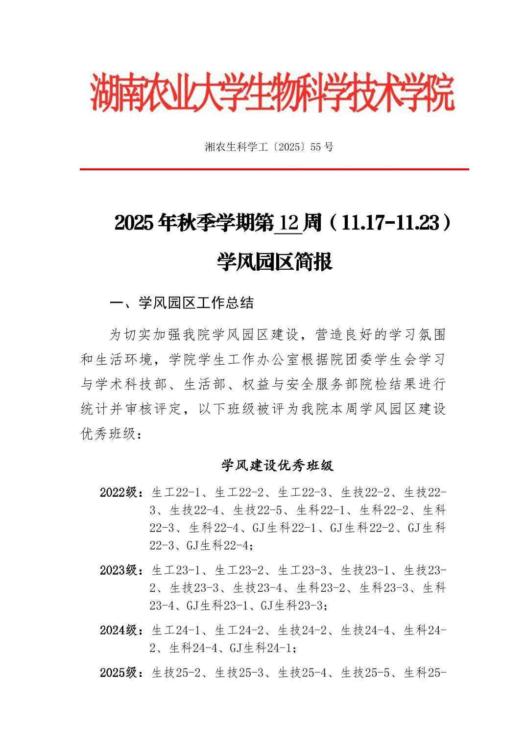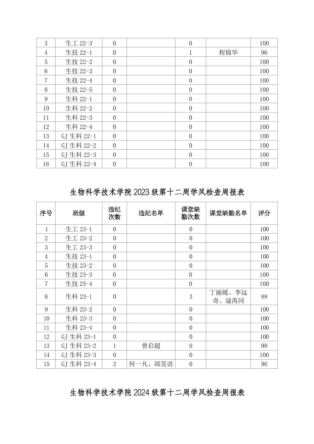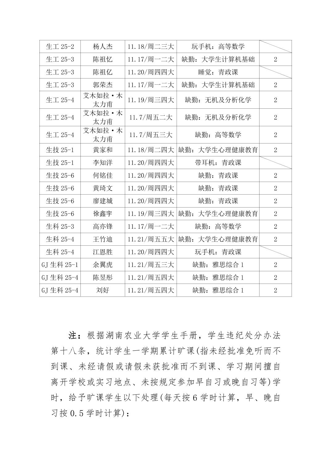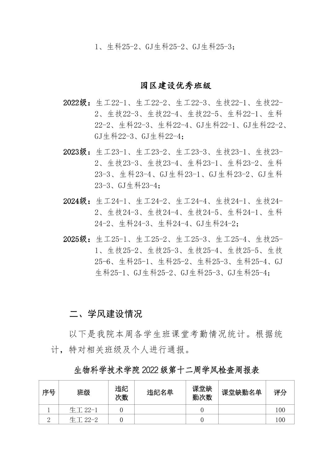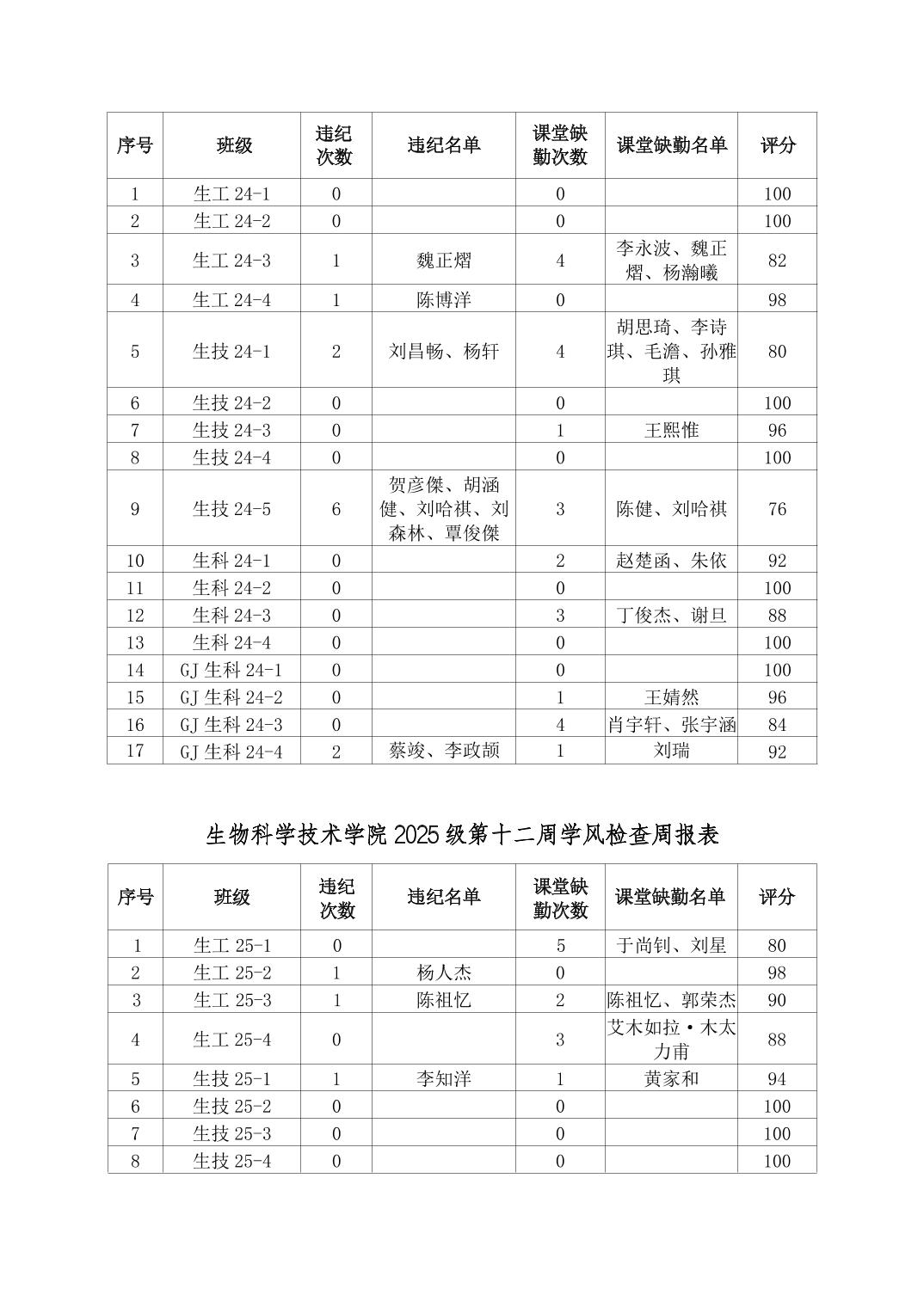 2025年秋季学期生物科学技术学院第12周日管通报