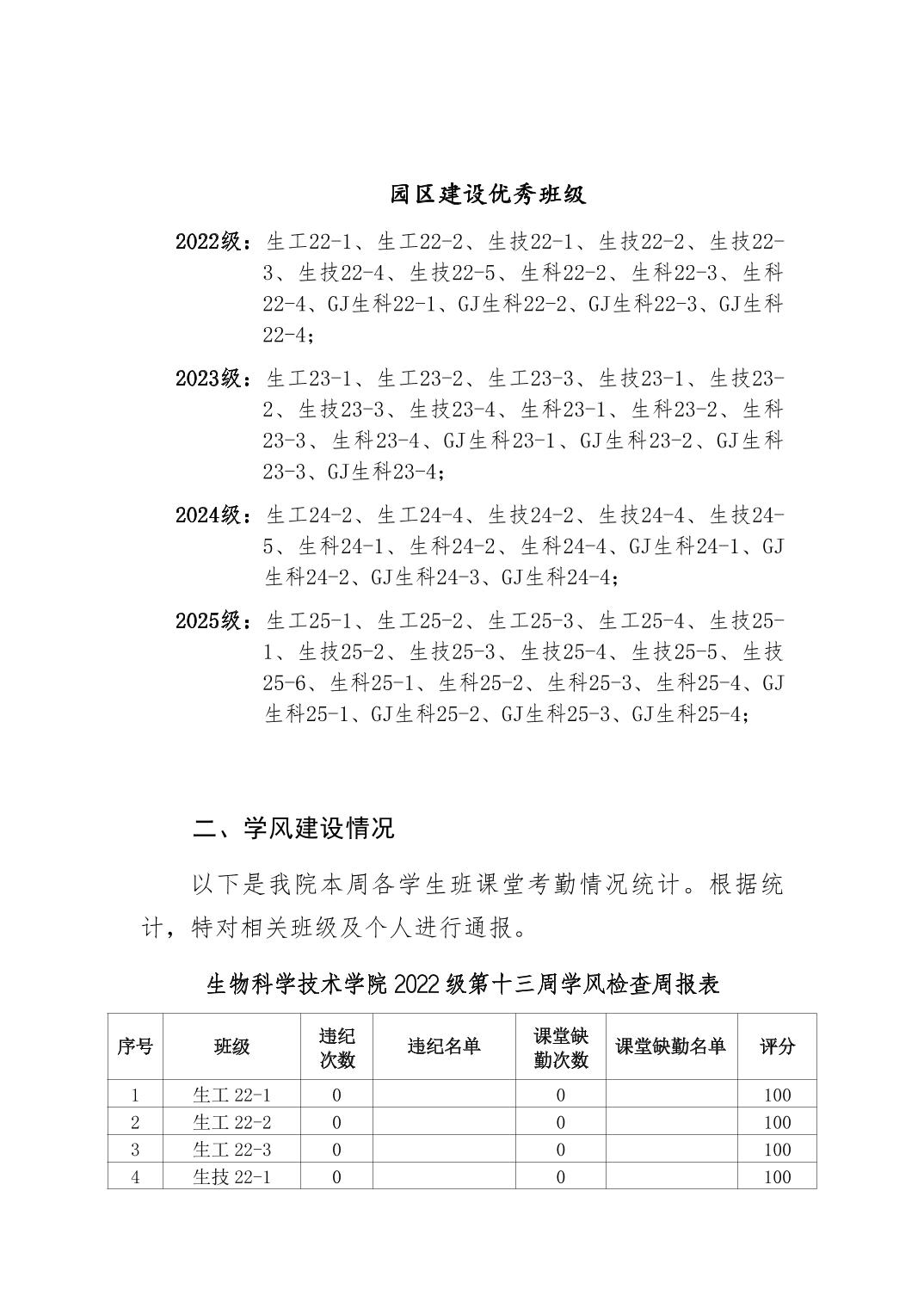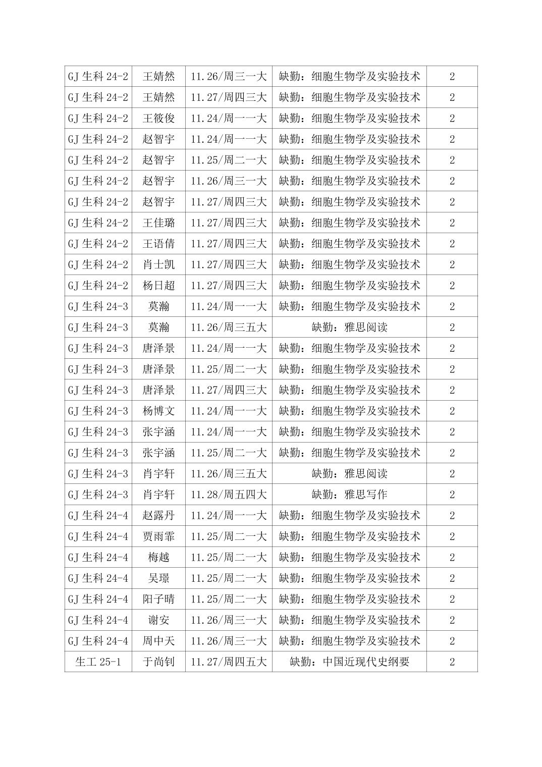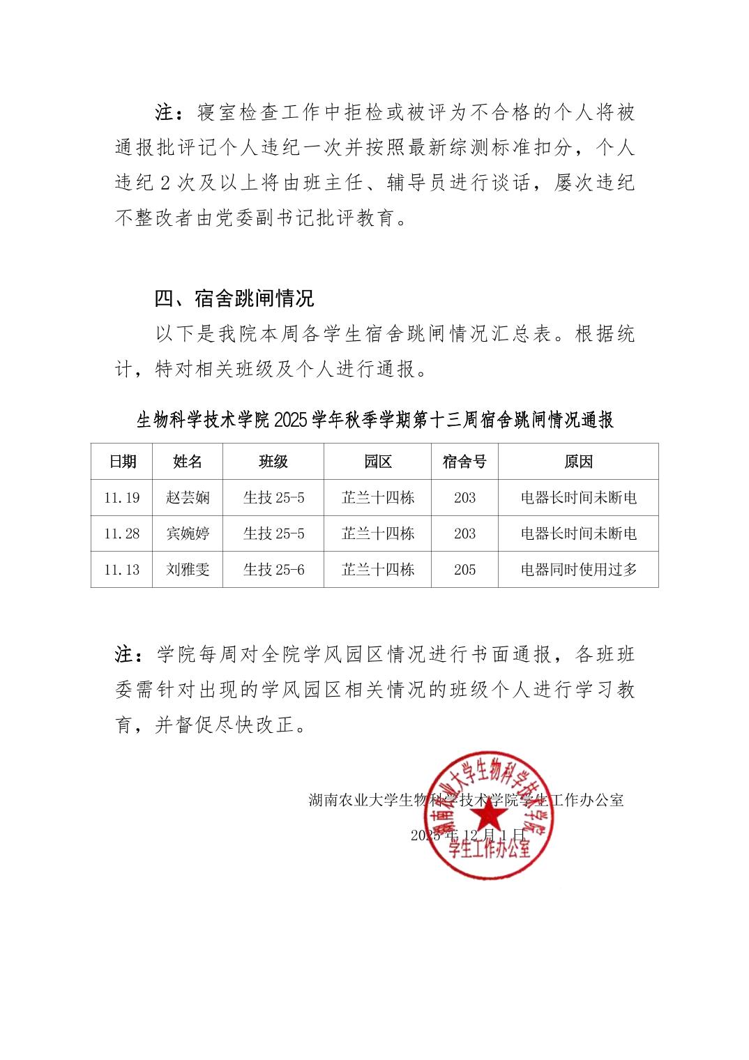 2025年秋季学期生物科学技术学院第13周日管通报