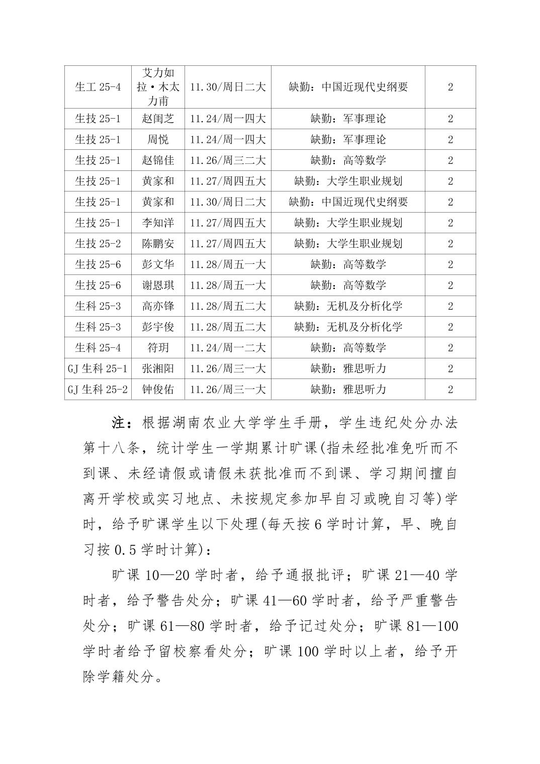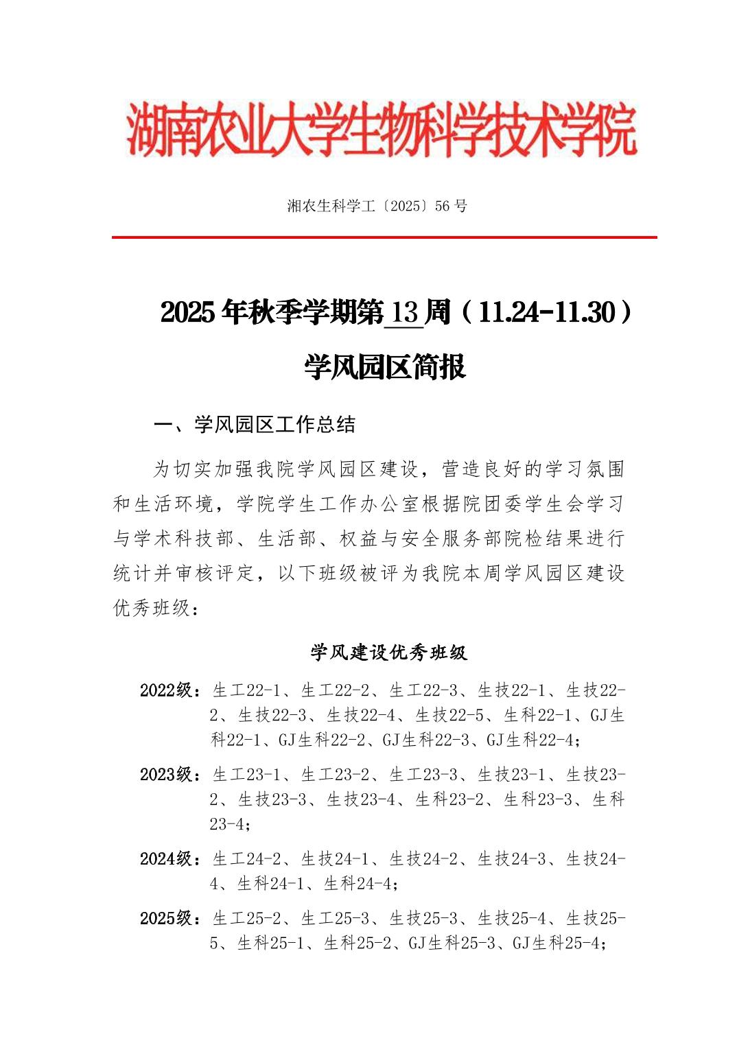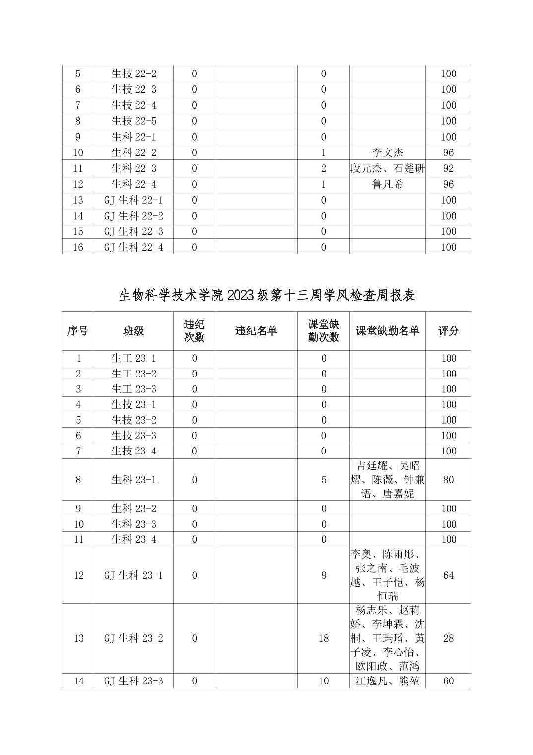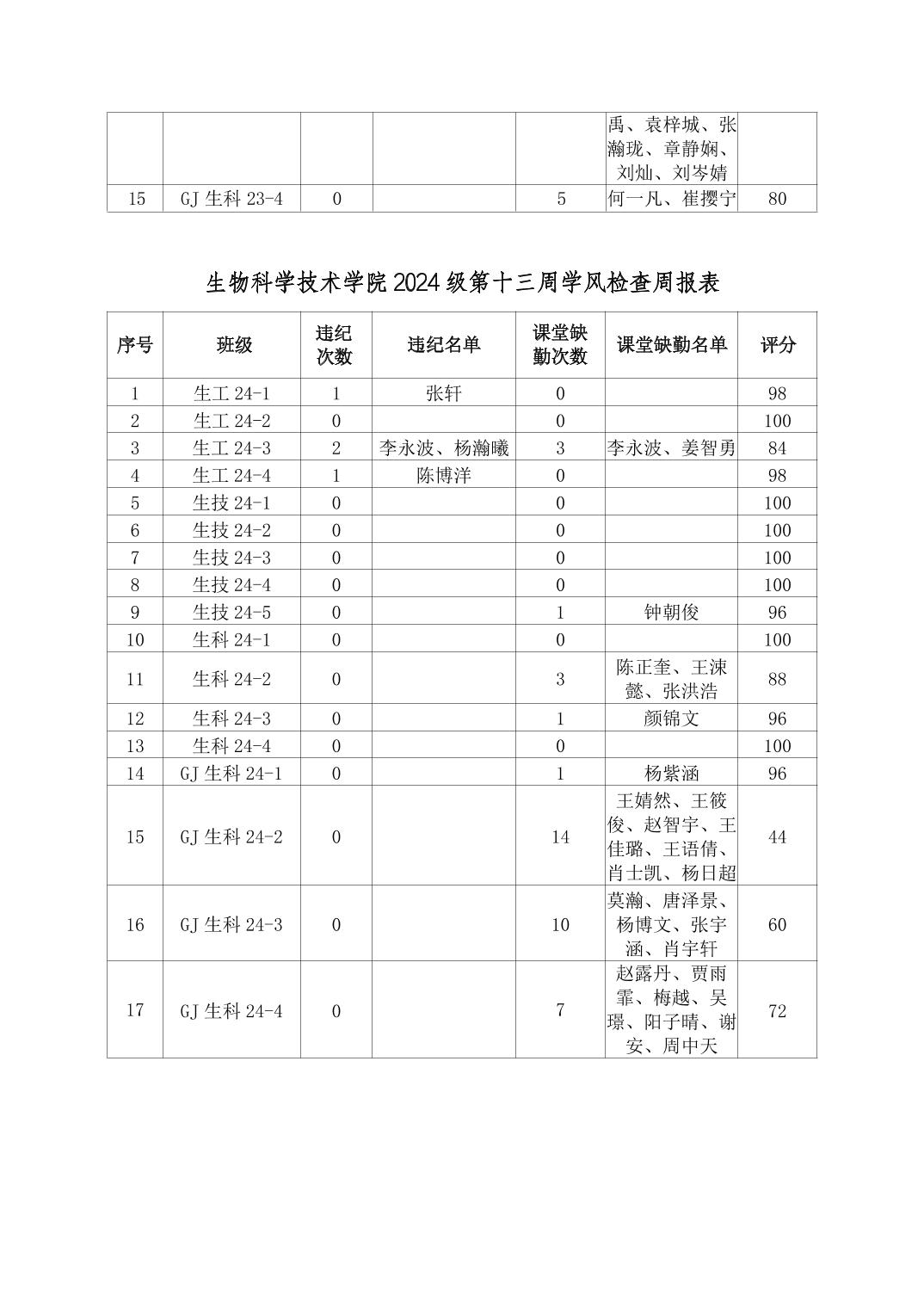 2025年秋季学期生物科学技术学院第13周日管通报