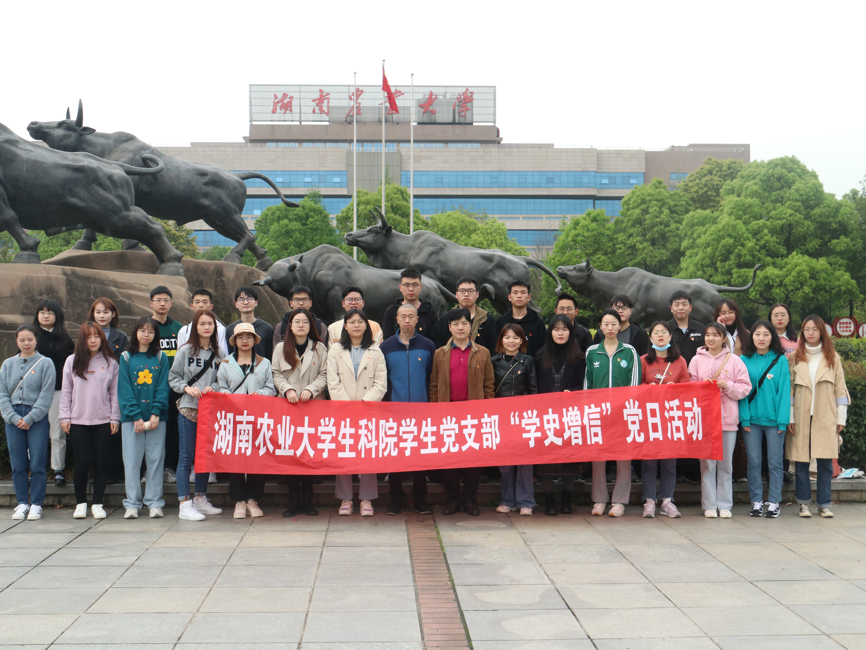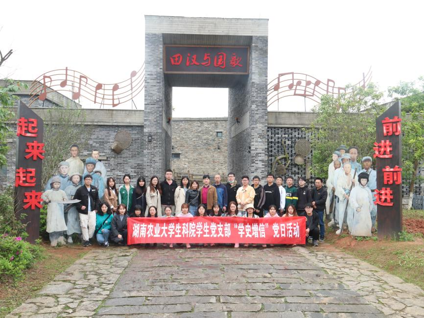 4月10上午,湖南农业大学生物科学技术学院研究生学生党支部与本科生学生党支部共计33人,前往长沙县田汉文化园,开展党史学习教育,进行“学史增信”专题学习,重温国歌历史,传承红色基因,弘扬革命精神,提高民族自信。