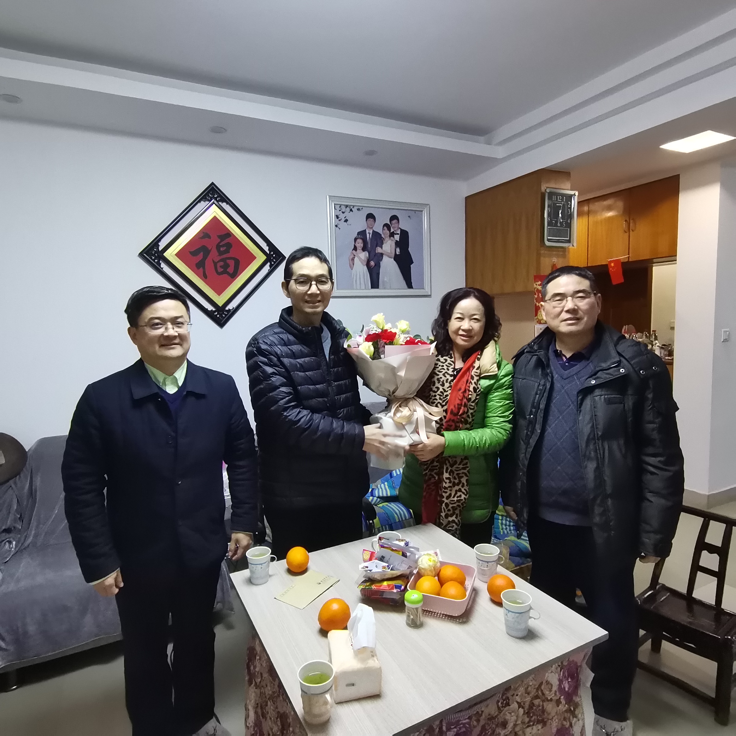 在贺教授家中,深入了解其家庭情况和实际需求,将慰问金送到贺教授的手中,送去学校和学院的温暖与关怀,并致以新春的问候和祝福。贺利雄教授也表达了对学校和学院的感谢之情,一直在积极配合治疗,力争早日康复,继续为学校服务,贡献自己的一份力量!