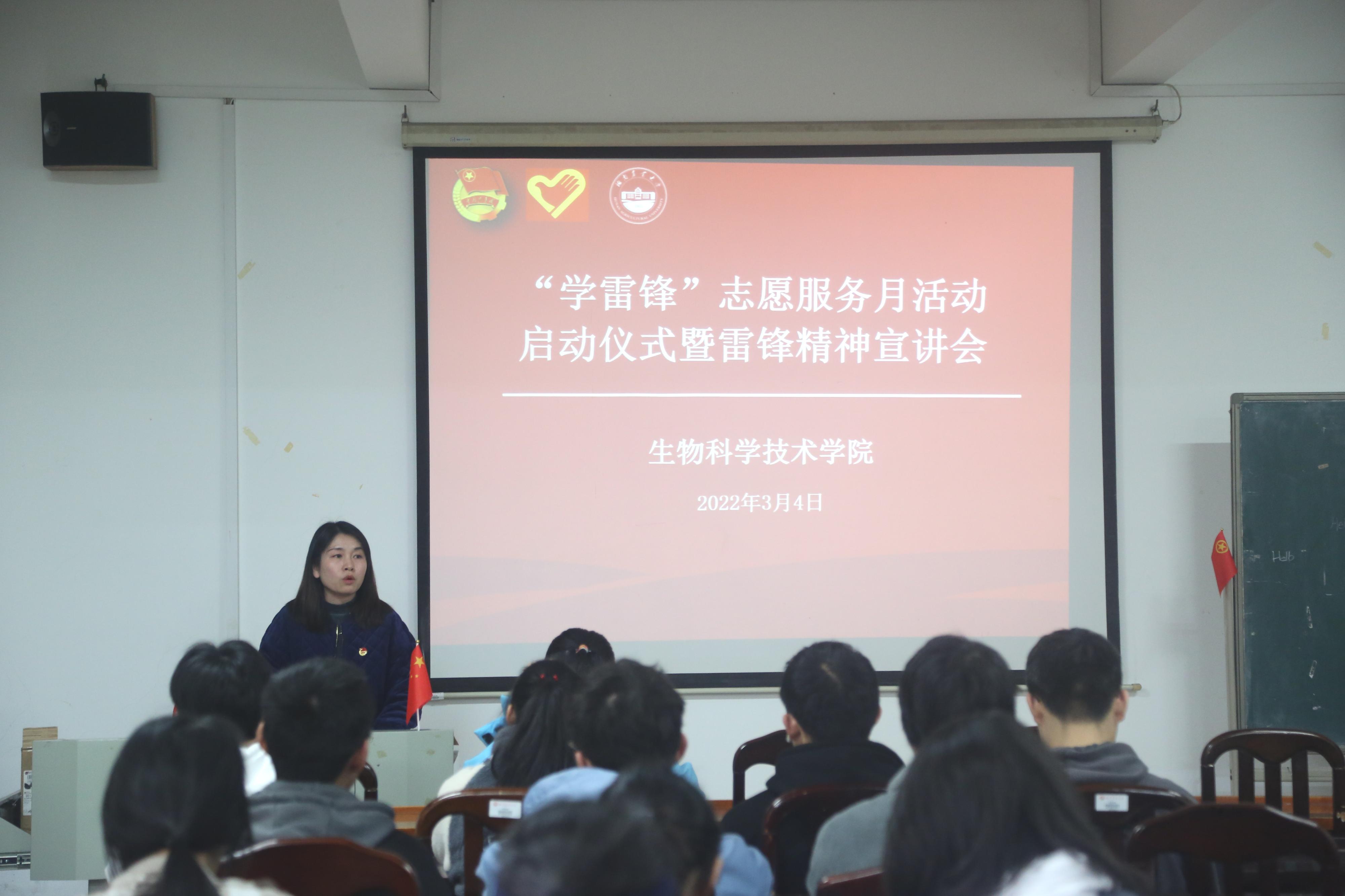 3月4日下午,生物科学技术学院举行了三月学雷锋月活动启动仪式暨雷锋精神宣讲会。会上,院团委书记刘琴老师详细介绍了学院学雷锋活动月的工作安排,并声情并茂、深入浅出地向同学们进行了雷锋精神宣讲,从雷锋同志的感人事迹讲到新时代雷锋精神的具体体现,号召全院青年大学生积极投身志愿服务工作,以实际行动践行雷锋精神。